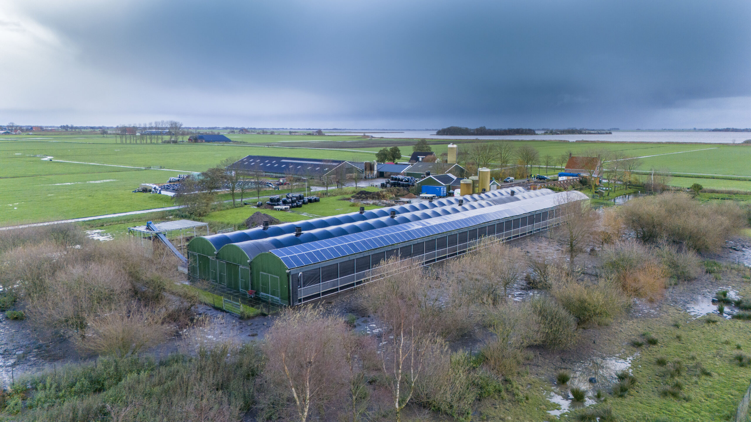 Pluimveebedrijf De Utrin ligt in het Friese merengebied, omringt door groene weilanden, toeristische fietsroutes en aantrekkelijke watersportvoorzieningen. De hennen zijn gehuisvest in een boogstal, verdeelt over vier afdelingen. Rondom de stal ligt 6 hectare uitloopgebied in de vorm van grasland en aangeplante struiken. Twee bogen van het staldak zijn geïsoleerd. Onder de derde boog is de koude wintertuin gesitueerd. De zijkant van de stal is opgetrokken uit sandwichpanelen. “Het is een eenvoudig en goedkoop stalconcept dat mijn oom in 2010 heeft neergezet”, vertelt Evert. “In het begin was ik wel wat sceptisch over deze constructie. Maar het werkt perfect. De hoge luchtinlaat in combinatie met afzuiging in de nok, geeft nauwelijks tocht in de stal. De kippen blijven goed gezond.”